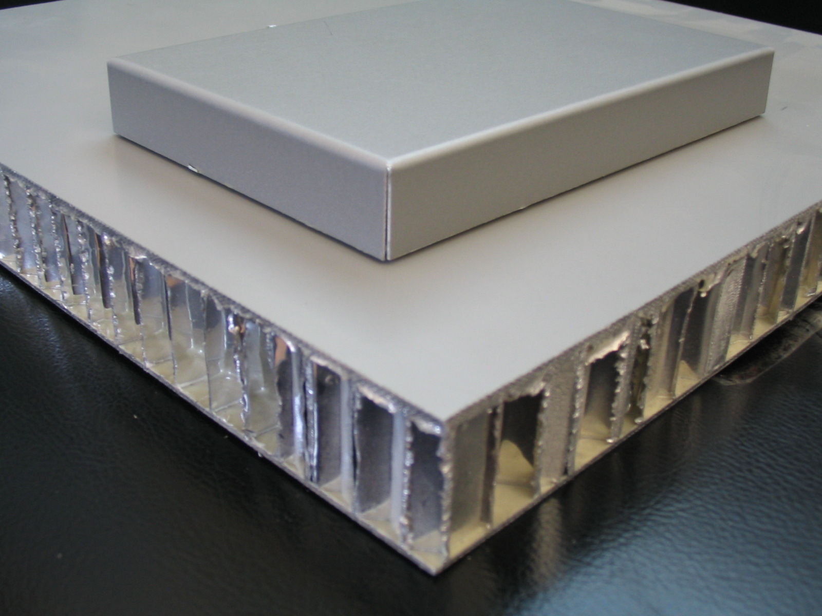 鋁蜂窩板采用高強(qiáng)度3003鋁合金作面板,高密度鋁蜂窩芯做芯材,面板常規(guī)厚度為0.8mm,1.0mm,板總體厚為10mm,15mm,25mm。其它規(guī)格結(jié)構(gòu)和尺寸可根據(jù)需要設(shè)計(jì)和制造,以滿足各種用途的需要。