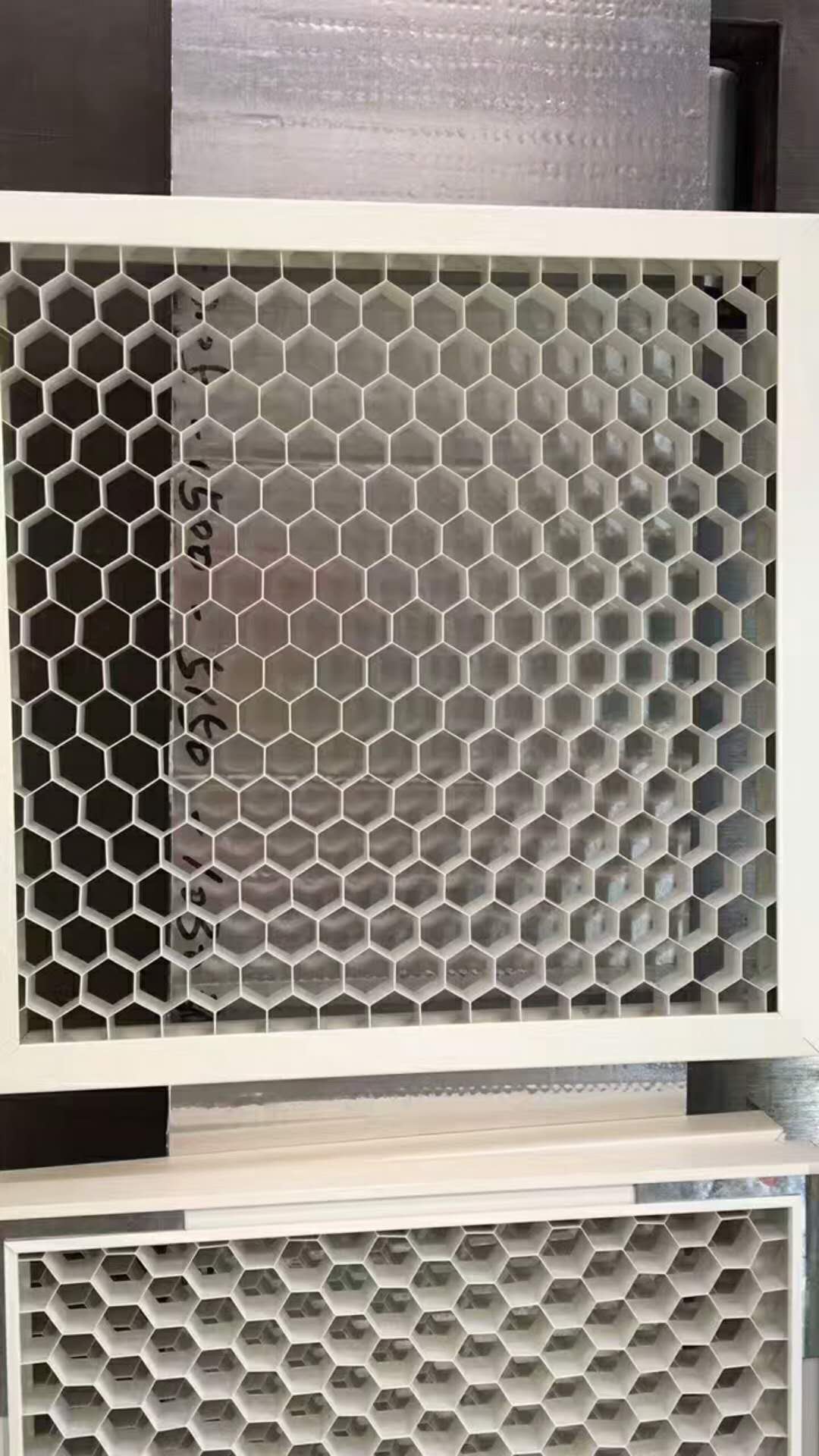 億萊鋁合金蜂窩板的蜂窩結(jié)構(gòu)形成的中空蜂窩單元空間,致使空氣之間不產(chǎn)生對流從而使板塊具有良好的隔熱、保溫、防潮性能;同時(shí)由于墻板是中空蜂窩復(fù)合體結(jié)構(gòu),具有良好的隔音功能,板面沖孔后達(dá)到很強(qiáng)吸聲效果;